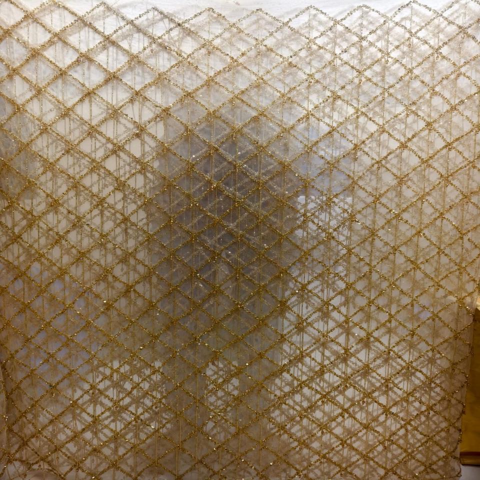 Tela de encaje de malla de lujo con pedrería pesada y bordado floral, hecha a mano, ecológica, estilo tradicional, colores personalizados, 5 yardas