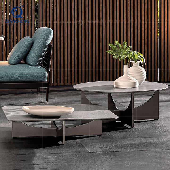 Juego de mesa de centro original de acero inoxidable de pizarra fija personalizada de gama alta de lujo muebles de exterior duraderos para uso recreativo