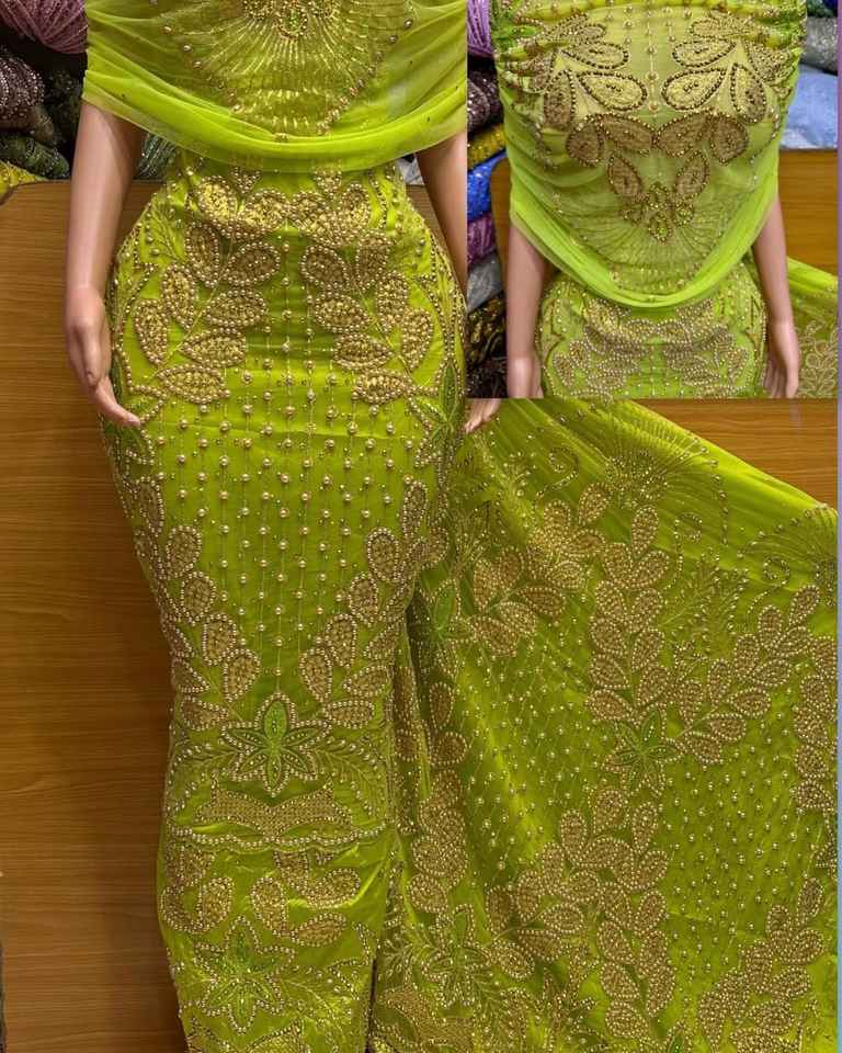 Encaje Jacquard Nigeriano de Lujo de Alta Calidad, 5 Yardas, Tela Brocada Africana de Organza, Tul Francés, Talla Grande, Bordado Ecológico