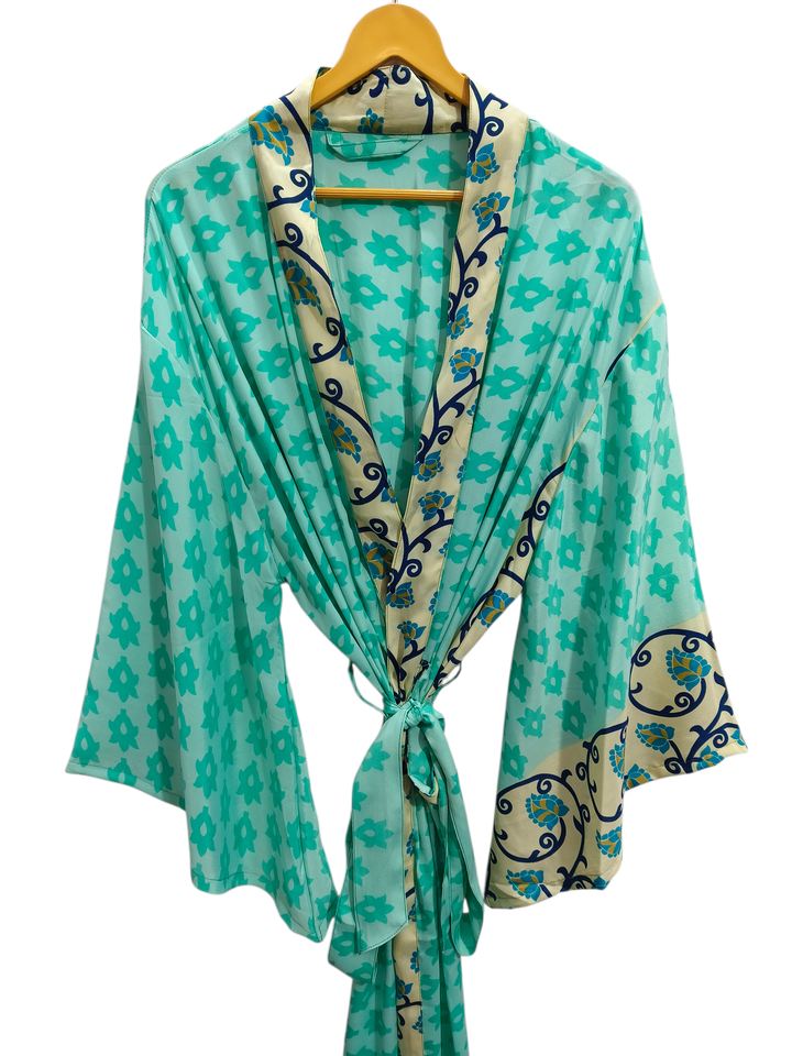 Kimono de Seda de Lujo, Bata de Sari Vintage, Bata Suave para Fiesta en la Playa, Kimono de Seda Hecho a Mano en India en Venta