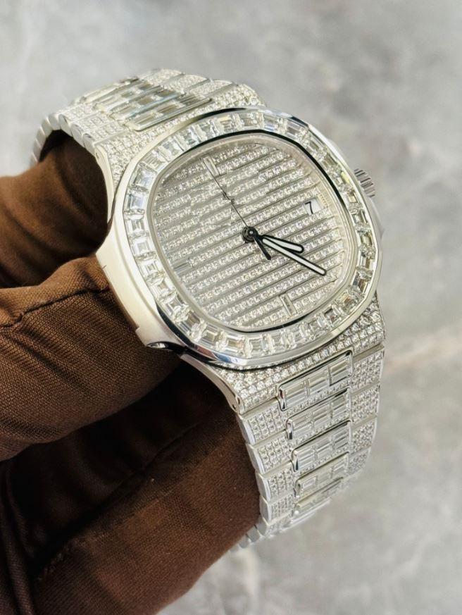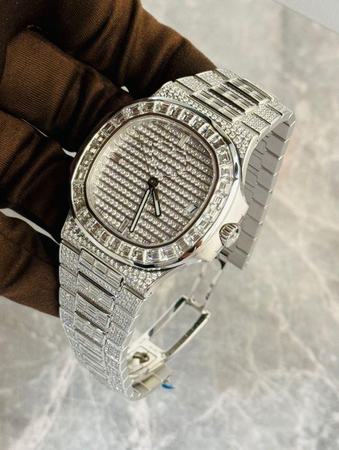 Reloj de Hip Hop de lujo para hombre, diamantes simulados completos, movimiento de cuarzo Ronda, 5mm, grosor de caja, esfera de puntero, estilo de moda para hielo