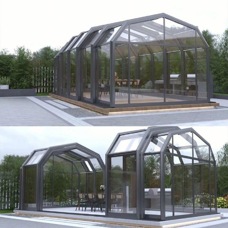 Solárium de Lujo Resistente a la Intemperie, Plegable y Retráctil, de Aluminio y Cristal para el Hogar