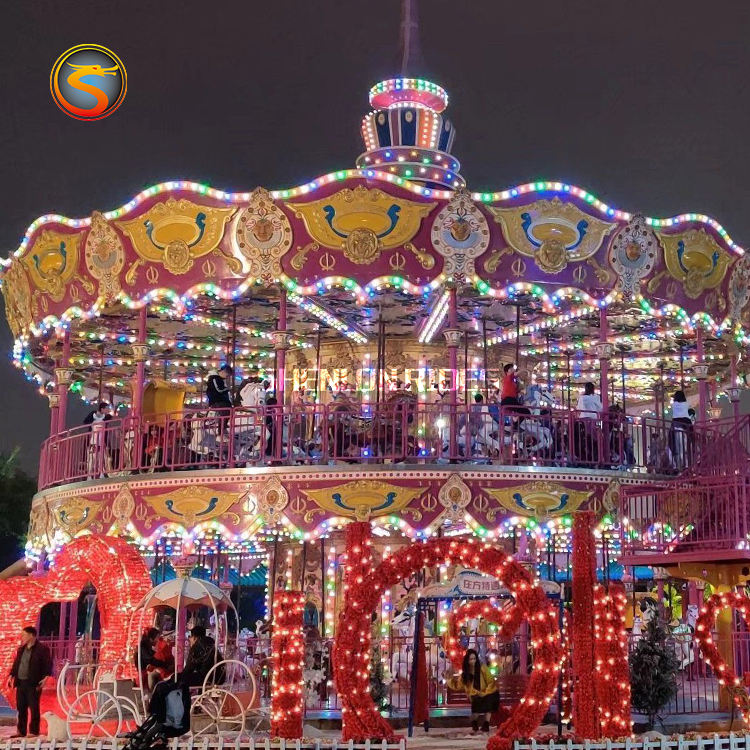 Diseño de caballos de lujo Parque de atracciones para niños Patio de recreo interior/exterior Carrusel Fibra de vidrio Construcción de acero Uso comercial