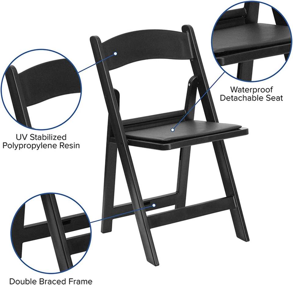 Sillas Plegables de Resina Negra Acolchadas para Eventos al Aire Libre, Banquetes, Alquiler, Apilables, Portátiles, para Hoteles de Lujo, para Uso en Apartamentos y Salas de Estar
