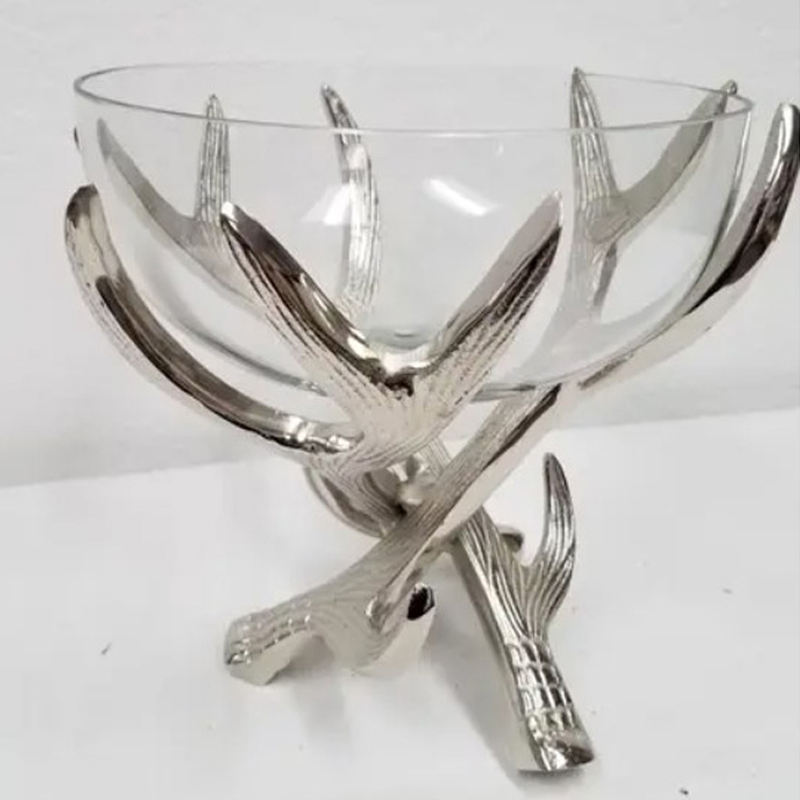 Plato de Servir de Metal para Hoteles de Lujo, Vajilla, Tazones de Metal con Grabado Artístico, Frutero de Metal con Vidrio