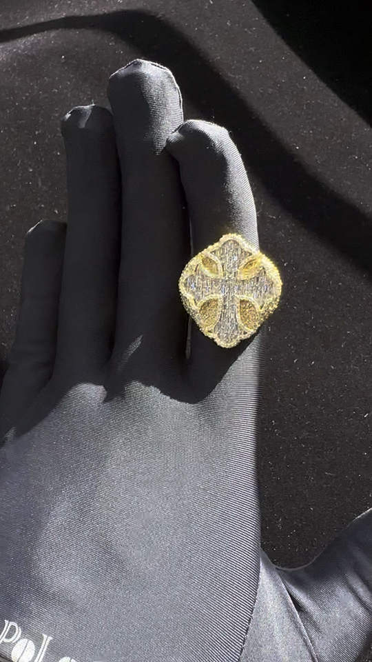 Anillo de Cruz con Diamantes de Lujo para Hombre, Plata de Ley 925 con Piedras Baguette, Joyería de Larga Duración para Regalo de Boda