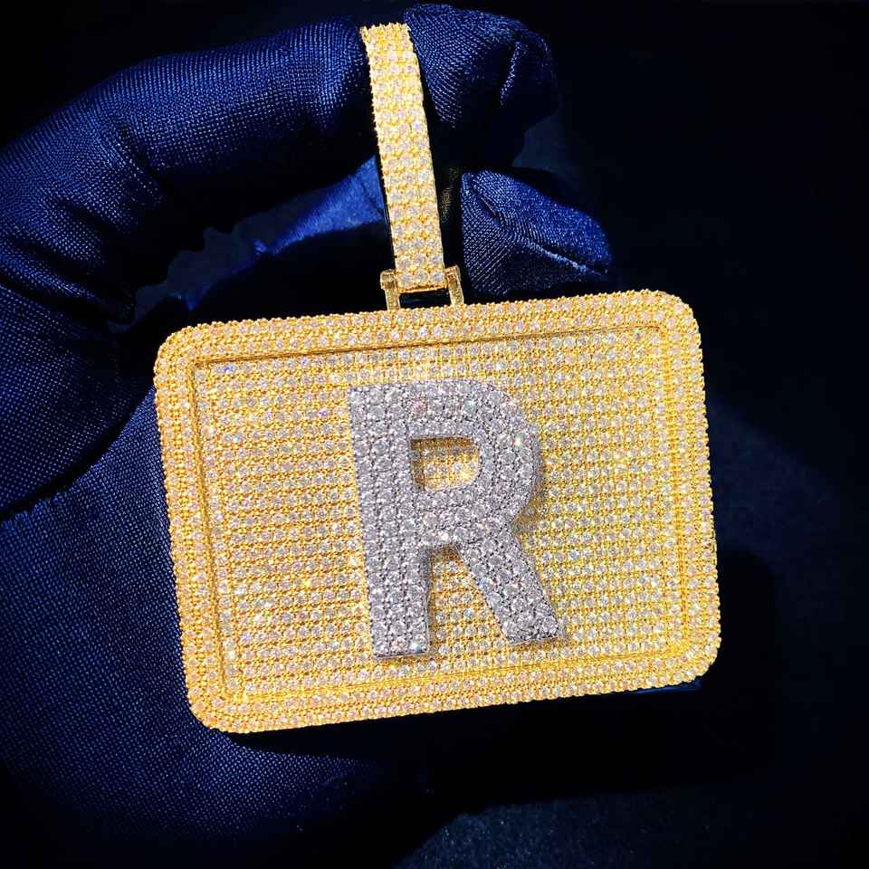 Colgante de Lujo con Letra R y Diamantes Moissanite VVS, Chapado en Oro de 18k sobre Plata de Ley, Joyería Hip Hop