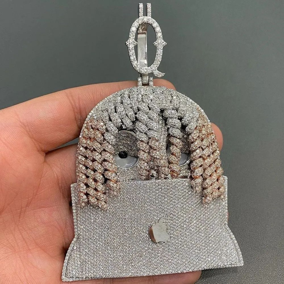 Colgante de Figura Enmascarada con Incrustaciones de Lujo, Moissanita VVS, Joyería Hip Hop, Chapado en Oro, Personaje Adorable