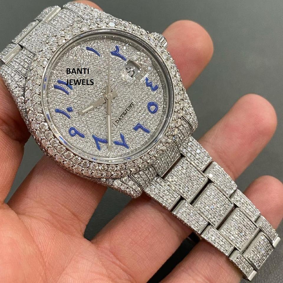 Reloj de Lujo con Incrustaciones de Moissanita, Esfera con Diamantes Completos y Brazalete de Baguette, Joyería Hip Hop VVS1