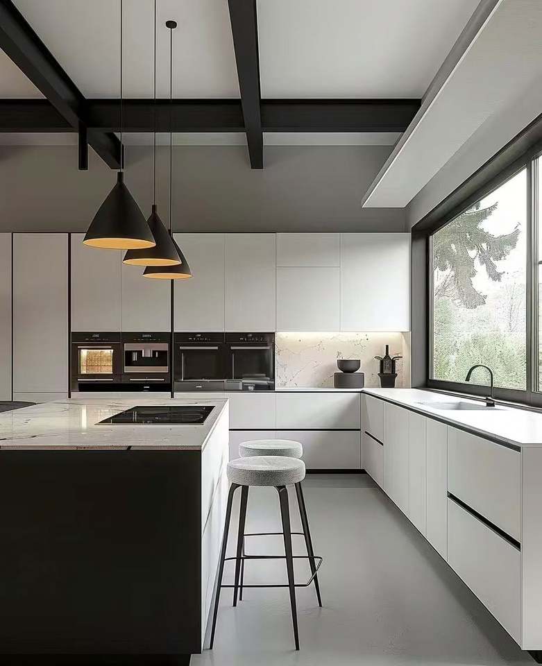 Juego completo de unidades de cocina de almacenamiento de madera contrachapada de superficie sólida de Isla de lujo, armarios modernos, armarios de pared de esquina, cocinas para el hogar