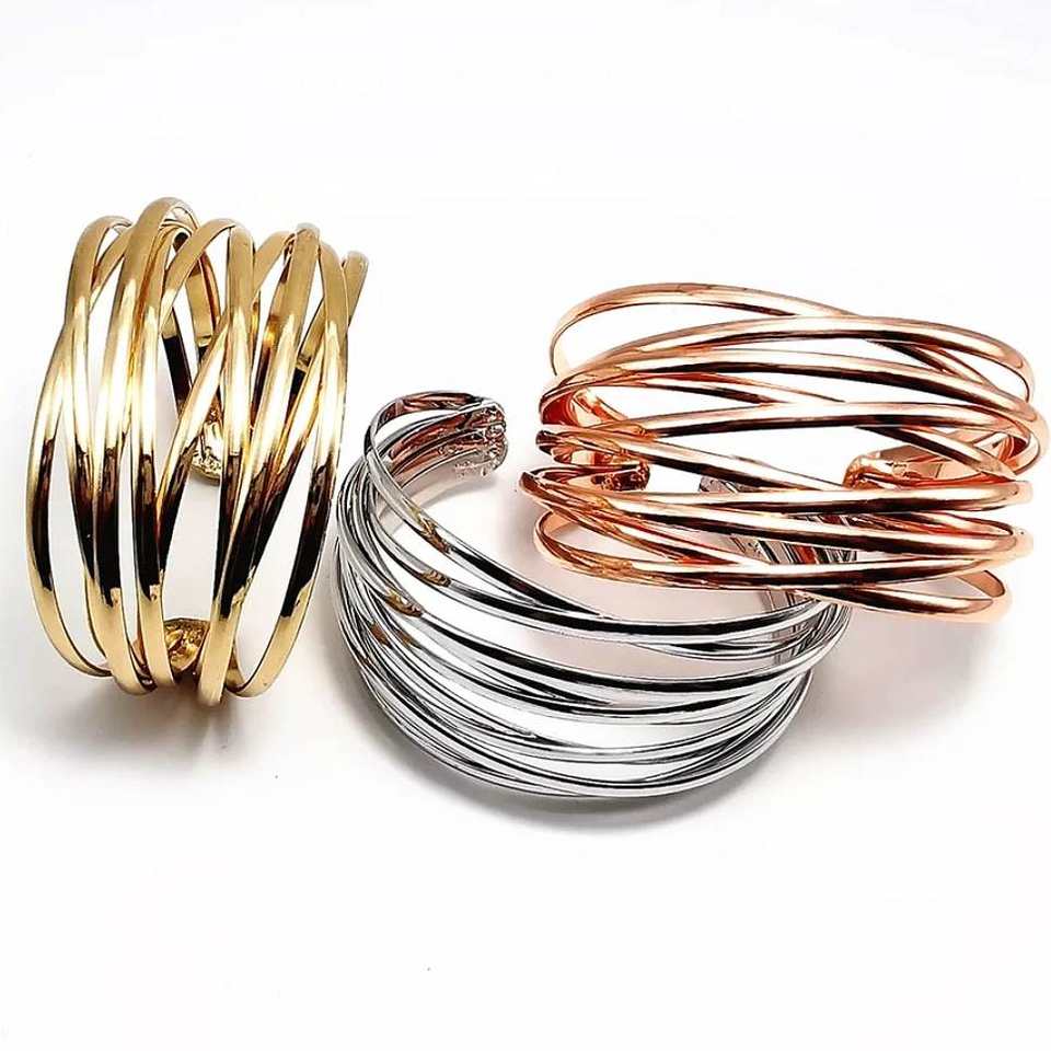 Brazalete de alambre de cable ajustable de acero inoxidable con acabado plateado de alta calidad para hombres y mujeres joyería de moda