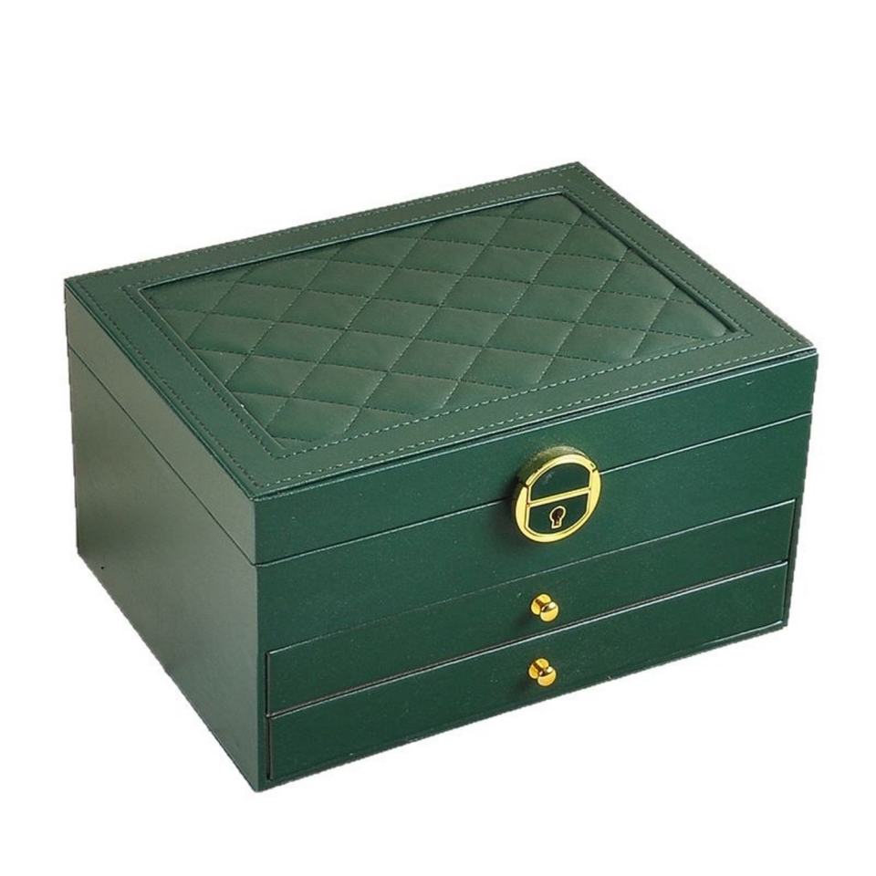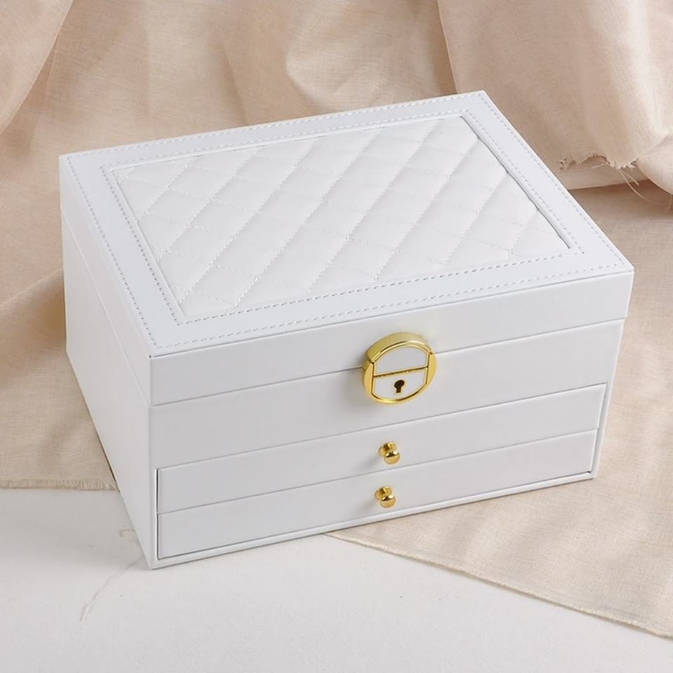 Caja de Almacenamiento de Joyas de Lujo de Tres Niveles con Cajones, Logotipo Personalizado, Cuero PU, Caja de Almacenamiento de Joyas de 3 Capas con Llave y Cerradura