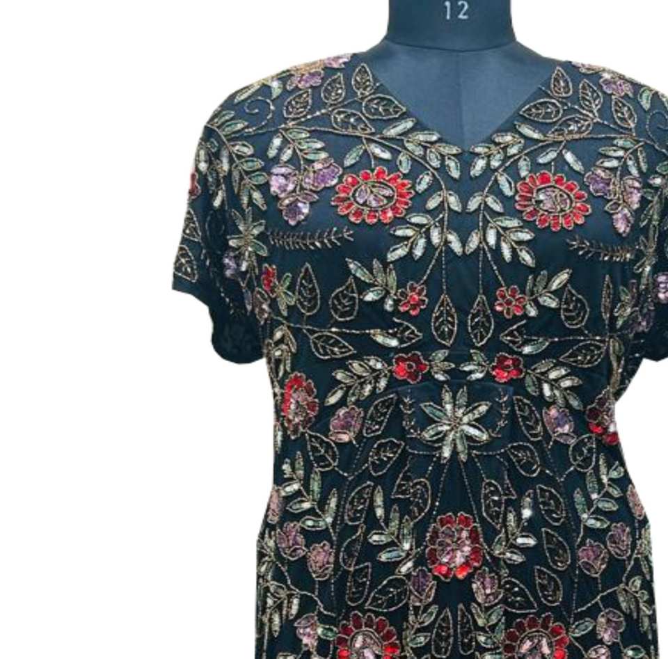 Descripción:Bordado pesado a mano con calidad azul plata, lentejuelas y cuentas