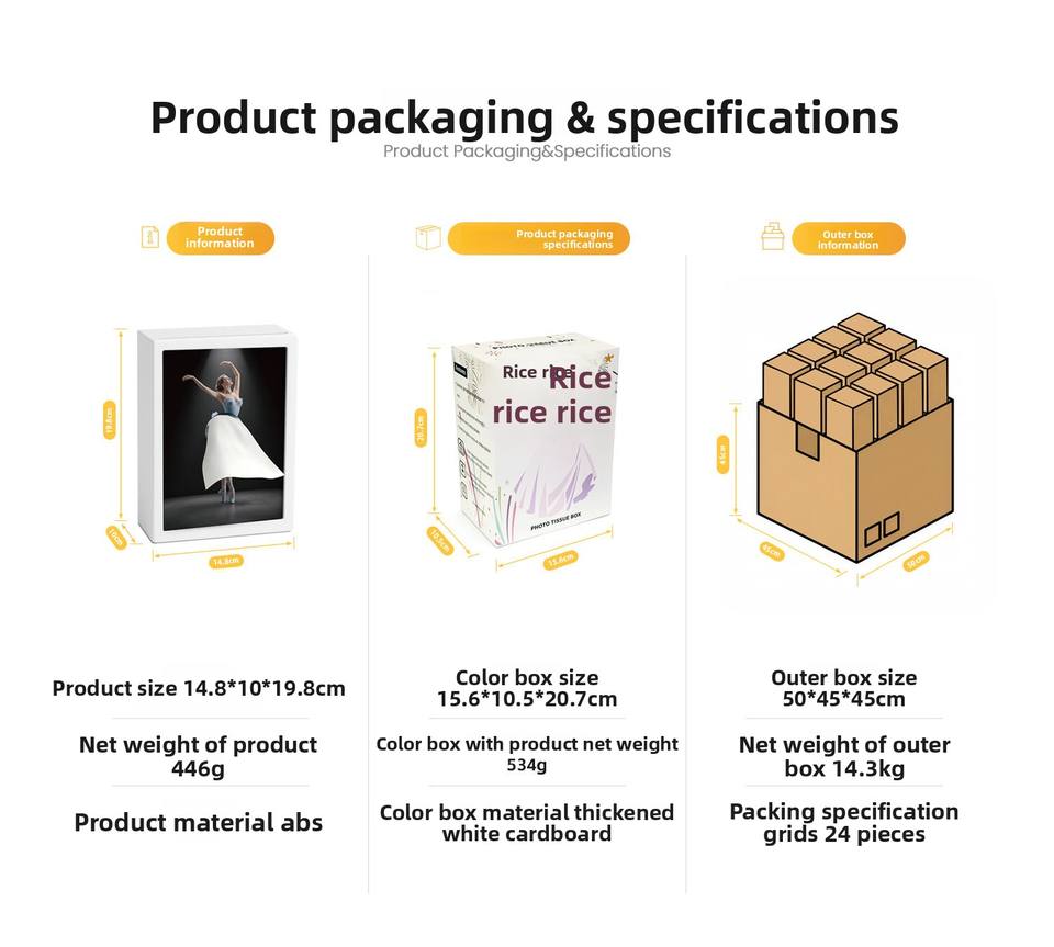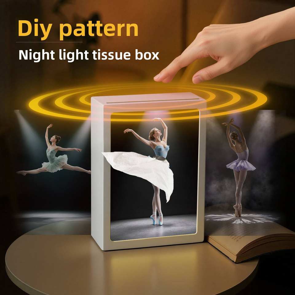 Caja de pañuelos de lujo con marco de fotos LED, exhibidor de imágenes 3D de bailarina en acrílico, adorno moderno para escritorio, caja de sombra de arte estético