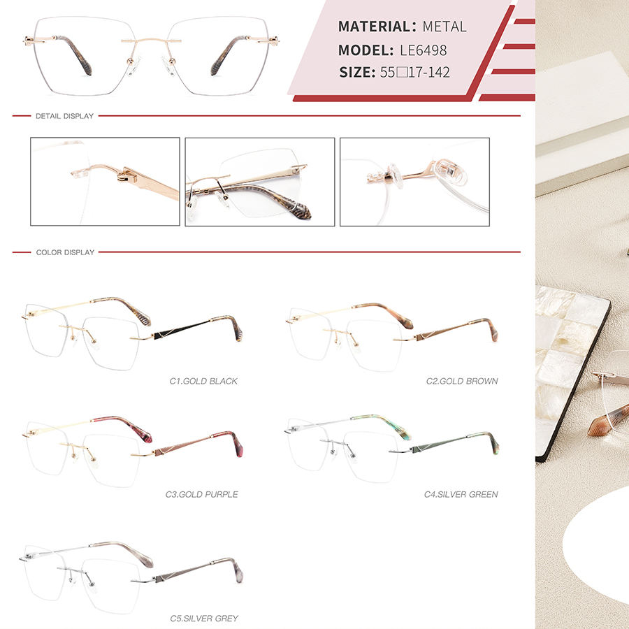 Gafas ópticas LE6498 sin montura de Metal de lujo para mujer, gafas de negocios sólidas a la moda, marcos de vidrio óptico de moda