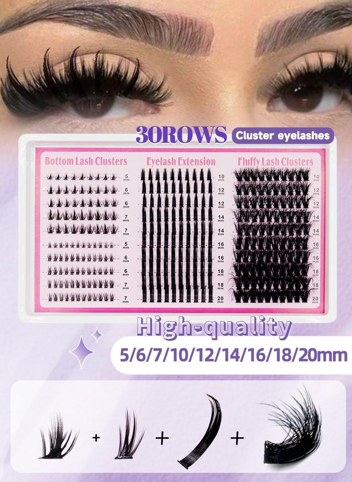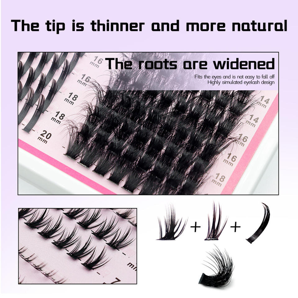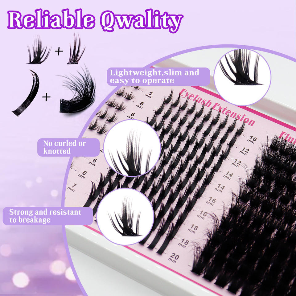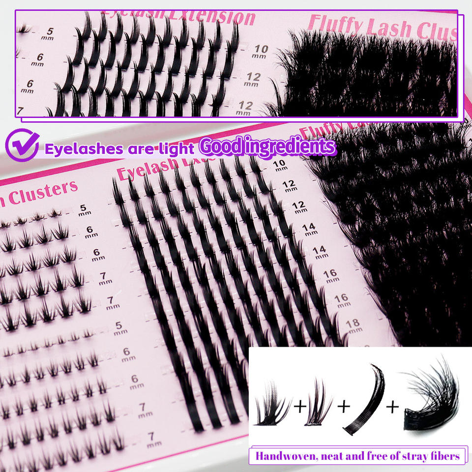 Kit de Pestañas de Lujo en Racimos, Pestañas Individuales Mixtas, Pestañas Inferiores y Pestañas en Espiga, Racimos Segmentados, Set de Extensiones de Pestañas DIY