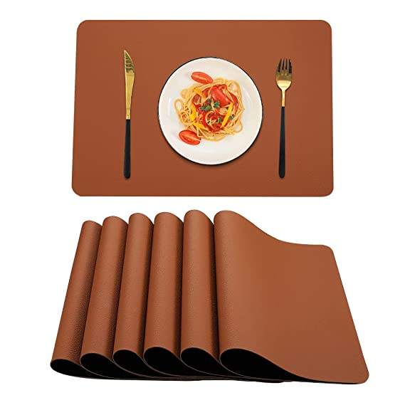 Uxury-salvamanteles de piel para mujer, manteles individuales con forma cuadrada de color marrón