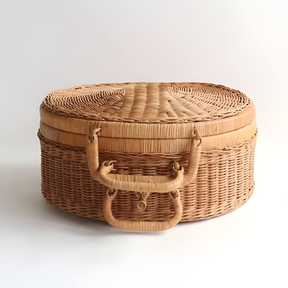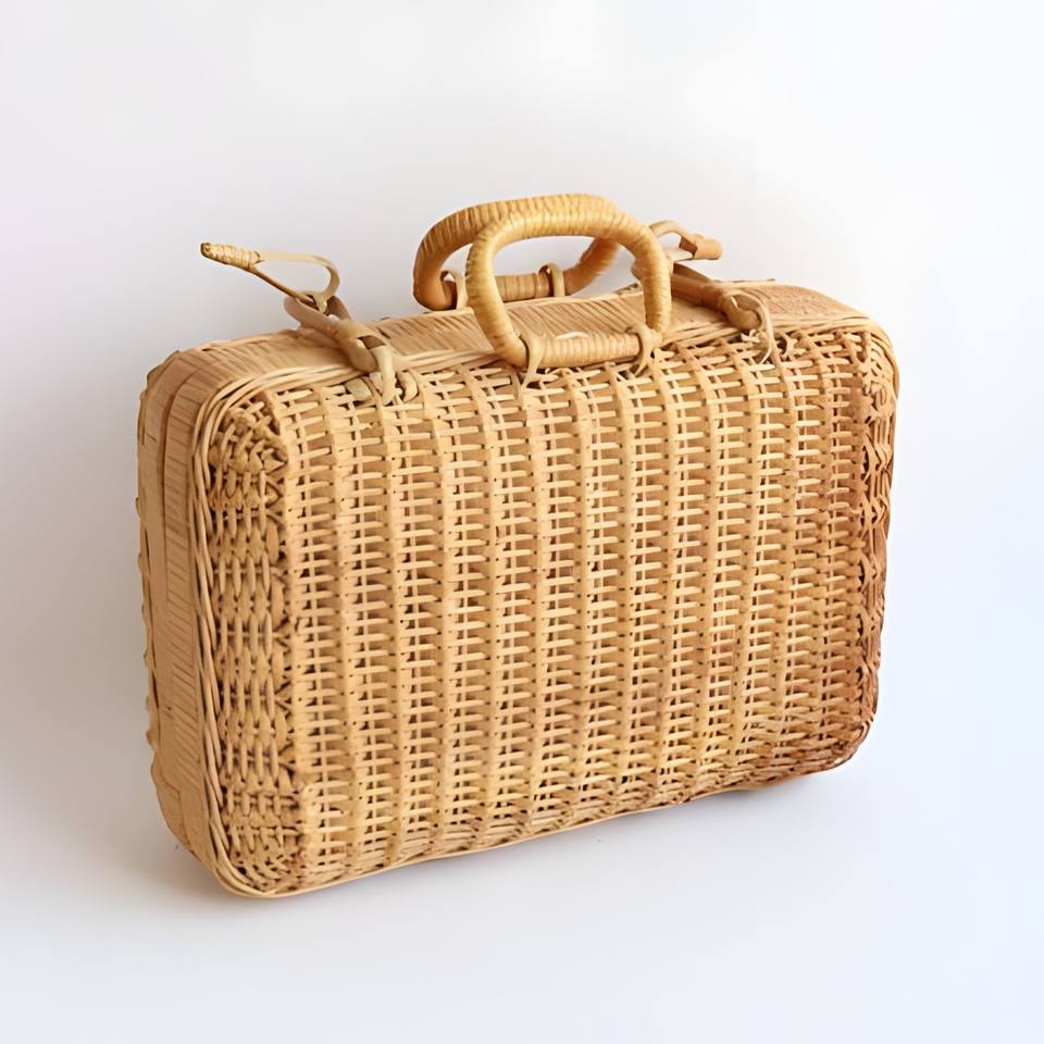 Maleta de Lujo Tejida a Mano de Ratán Natural, Maletas Redondas de Mimbre con Logotipo Personalizado, Servicio OEM ODM