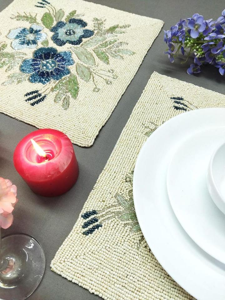 Camino de Mesa de Lujo con Cuentas MD, Exclusivo Bordado Floral Hecho a Mano, Estilo Clásico para Bodas, Ecológico