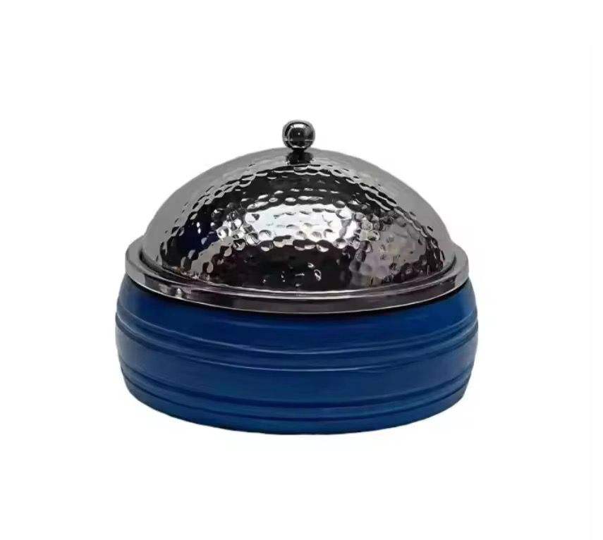 Calentadores de Comida de Lujo con Incrustaciones de Madreperla, Acabado Brillante Perlado, Ollas Redondas Artesanales para Buffet de Bodas