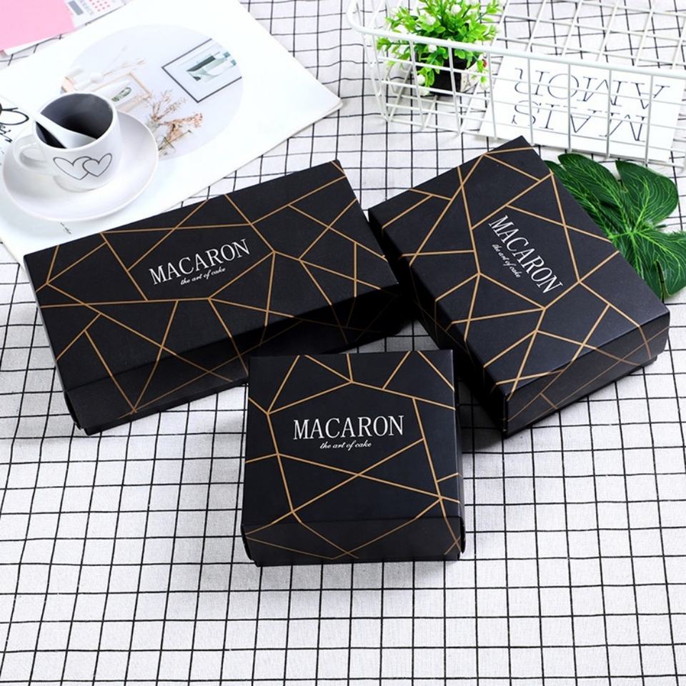 Cajas de Macarons de Lujo, Juego de Cajas para Macarons Franceses, Cajas Negras para Macarons, Logotipo Personalizado