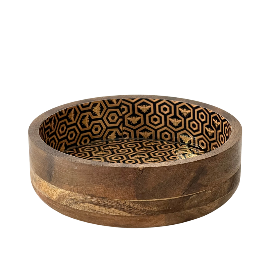 Tazón de Madera Artesanal Ecológico de Lujo con Estampado de Esmalte para Decoración de Mesa de Comedor para Bodas y Diwali