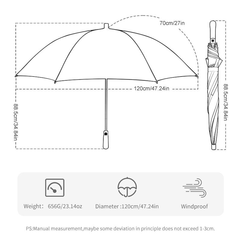 Nombre:Paraguas de golf personalizado con logotipo, impermeable, con revestimiento UV negro y protección solar.