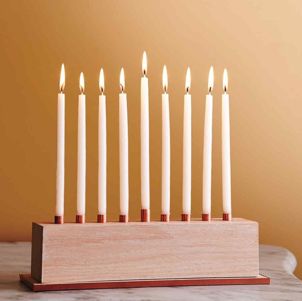 Mármol de lujo Menorah Hanukkiah Rectangular Mármol blanco con soportes de latón dorado Elegante portavelas Judaica Moderno hecho a mano