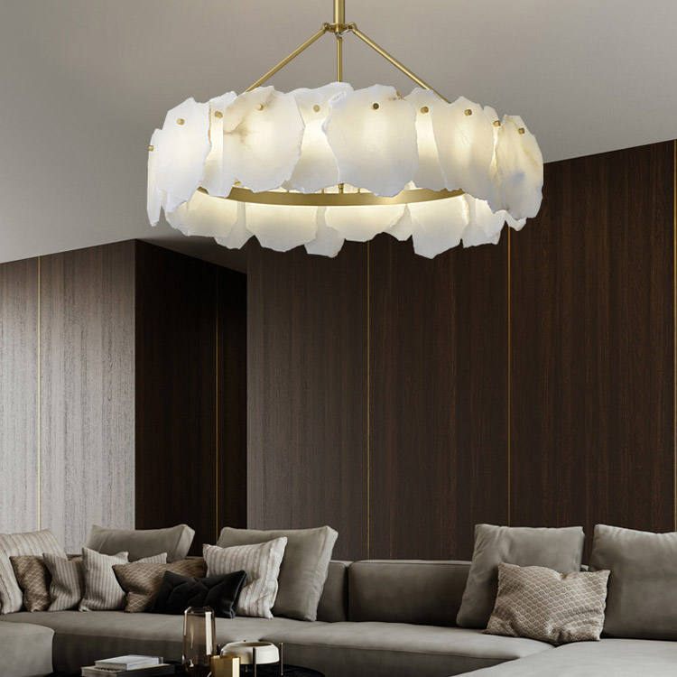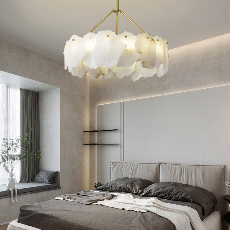 Lámpara colgante de mármol de lujo con candelabro de latón para sala de estar, comedor, dormitorio o sala de exposiciones en apartamentos