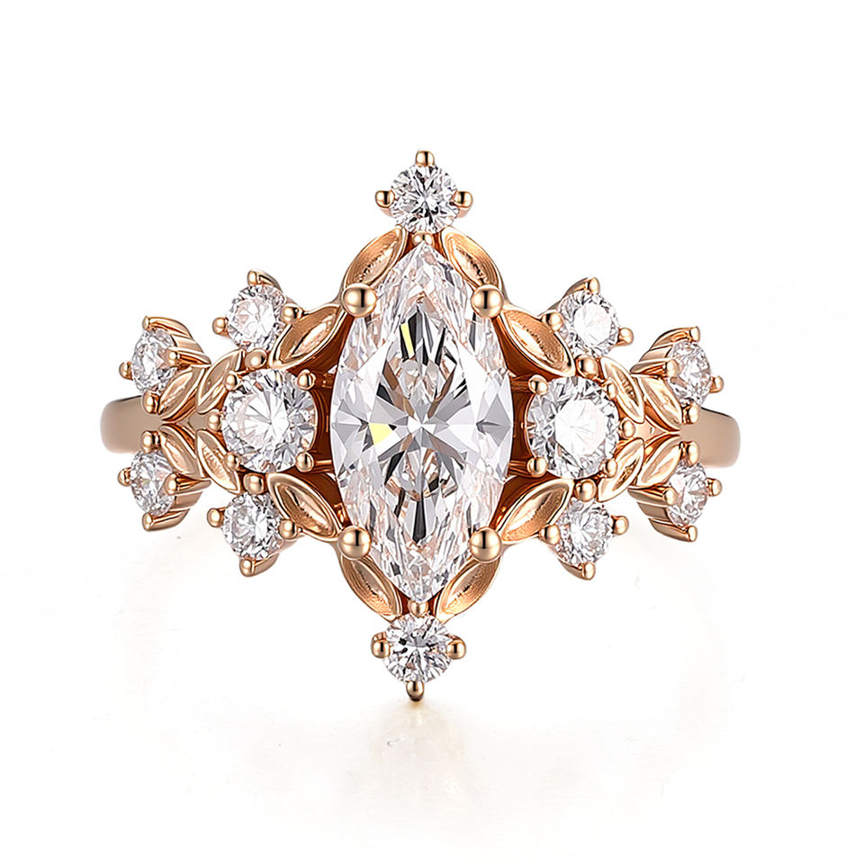 Anillo de Joyería Fina de Oro Amarillo Macizo de 14K/18K con Diamante de Laboratorio de Corte Marquesa de Lujo, Diseño Original, Anillos Personalizados para Hombre y Mujer