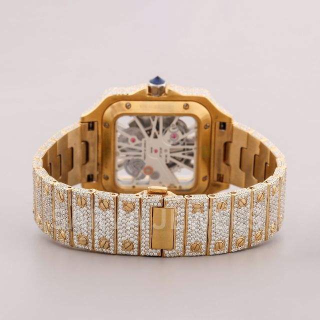 Reloj analógico automático de lujo para hombre VVS Moissanite Diamond Sapphire Leather White Gold Band-Claridad mejorada Estilo Hip Hop