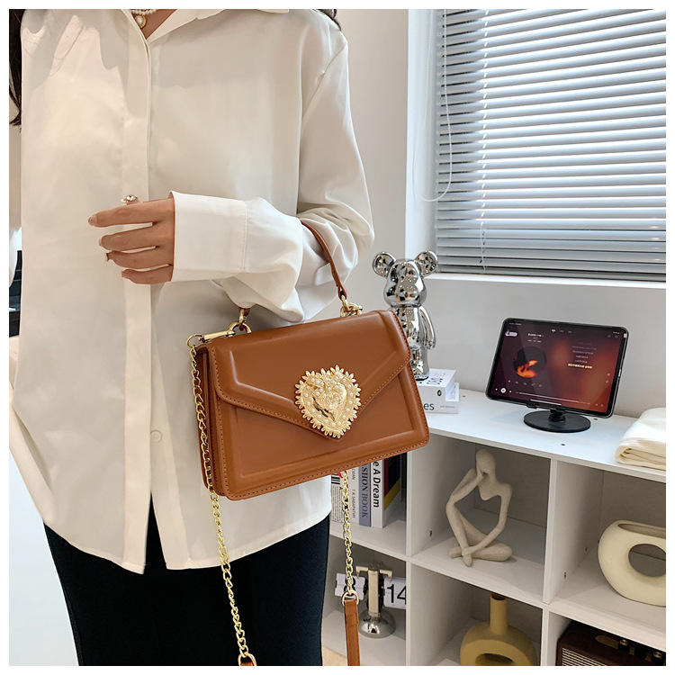 Bolso bandolera con correas de cadena de Metal de lujo para mujer, bolsos de hombro Retro a la moda para mujer con cuero Pu