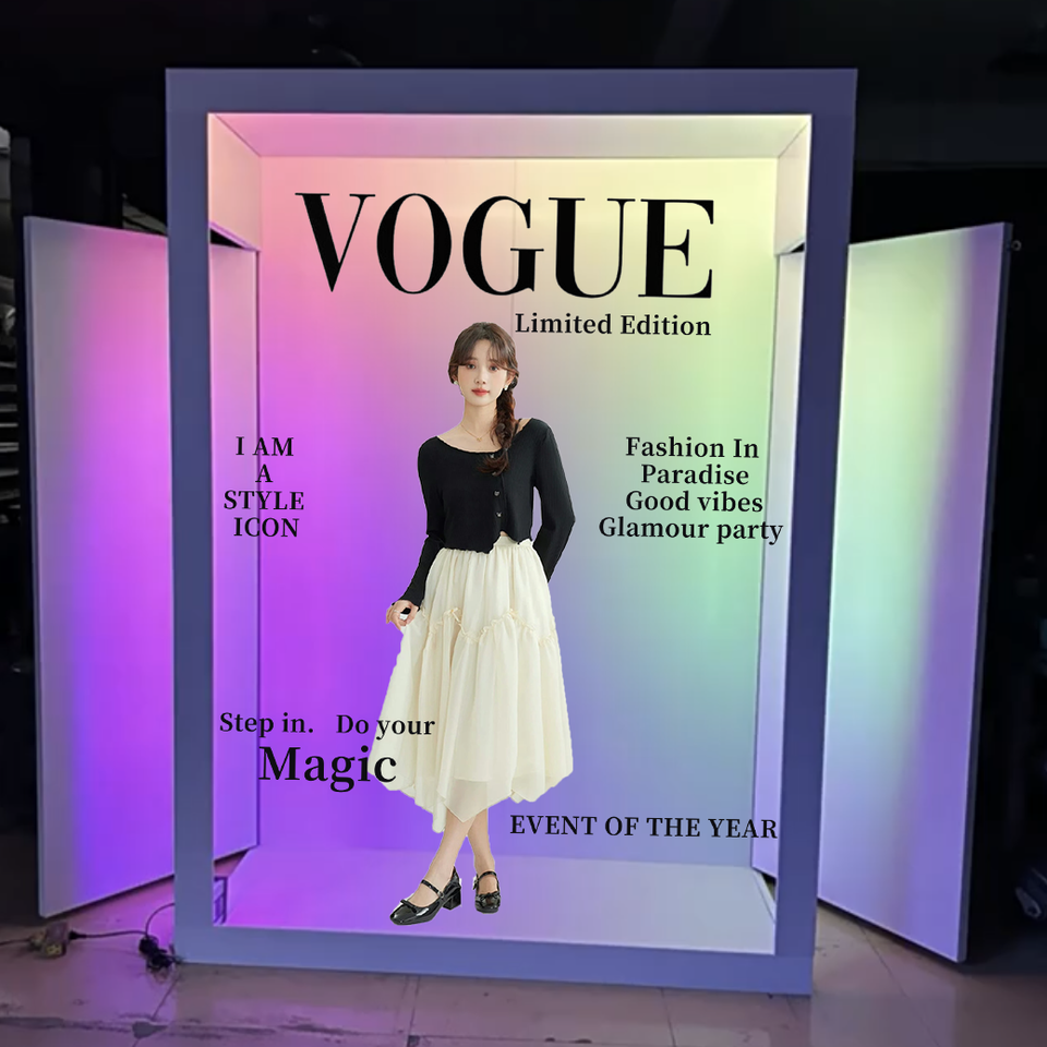 Cabina de Fotos Metálica de Lujo para Revistas, con Soporte para iPad y Cámara Réflex, Impresión Autoservicio, Control Remoto, Plegable, Portátil, para Fiestas