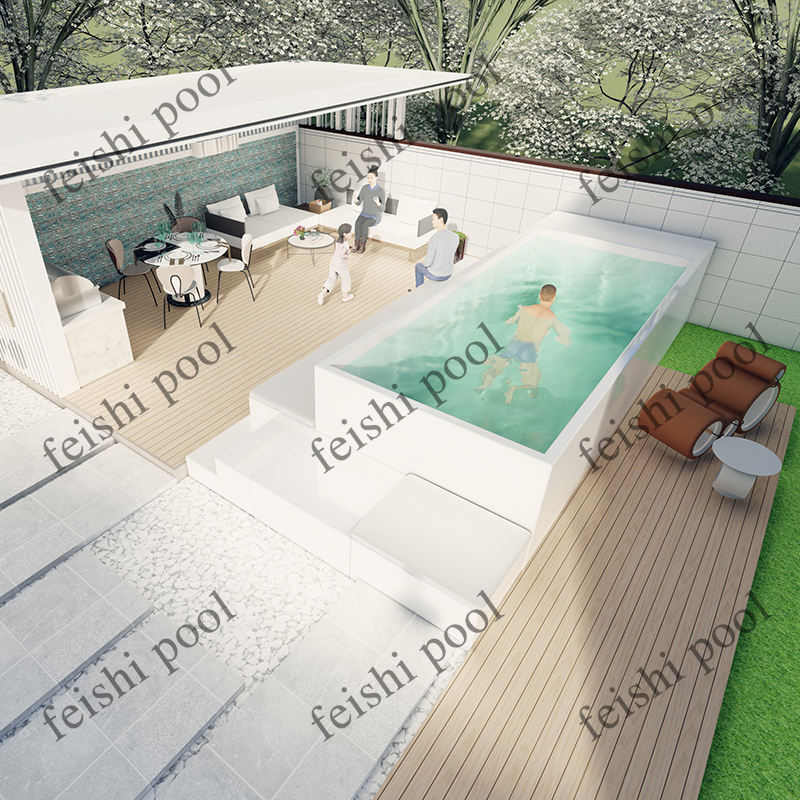 Mini piscina de fibra de vidrio sobre el suelo de lujo para resorts y villas utilizadas para recreación al aire libre Piscina móvil