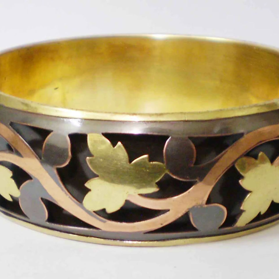 Brazalete de Lujo de Metal Mixto con Cobre, Elegante Diseño de Tres Tonos en Oro, Plata y Rosa, con Recortes de Hojas de Arce y Enredadera, Elaborado en Metal