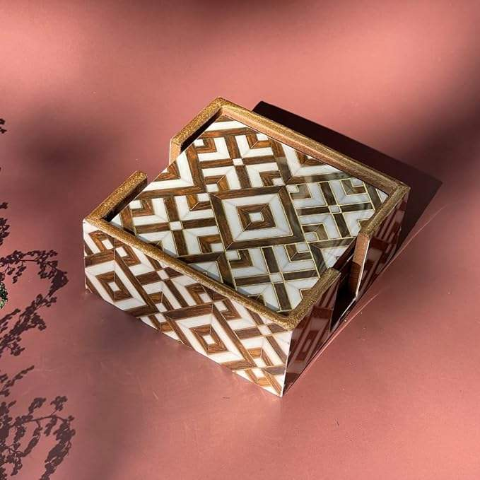Juego de 6 Porta Servilletas Rectangulares de Madera MDF Hechos a Mano, Modernos y de Lujo, Color Marrón y Blanco, para Oficina, Hogar y Comedor, a Bajo Precio