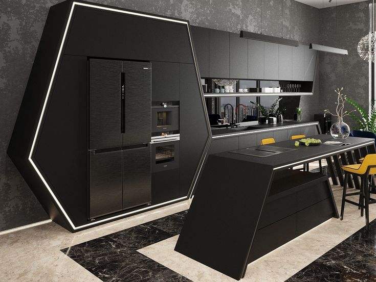 Diseño de Cocina Moderna de Lujo con Acabado Brillante, Iluminación Inteligente, Almacenamiento Premium y Elegante Interior Contemporáneo