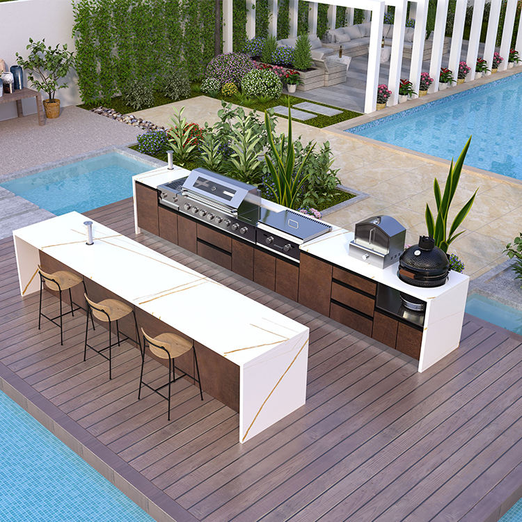 Soldadura completamente sellada: Proporciona un diseño impermeable, perfecto para cocinas exteriores, patios y zonas costeras, asegurando la funcionalidad a largo plazo.
