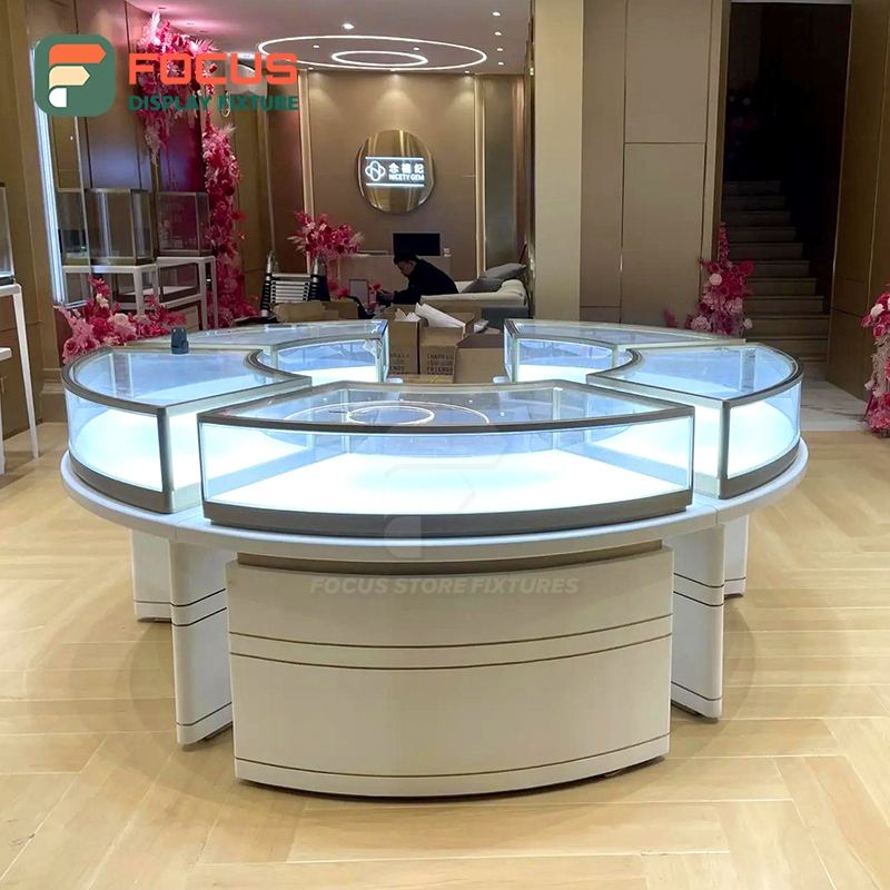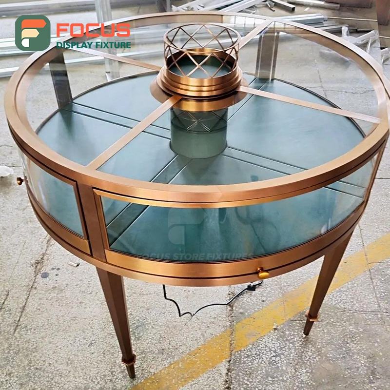 Vitrina de Exhibición de Joyería de Metal y Vidrio Moderna y de Lujo, con Iluminación LED, para Boutique de Alta Gama, Exhibidor Interior