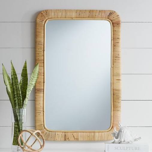 Lujo moderno cuadrado colgante latón mimbre tejido marco baño pared espejo calidad decoración para habitación bodas bohemias