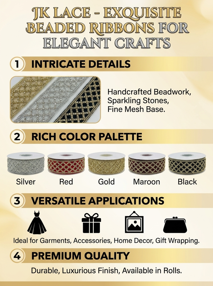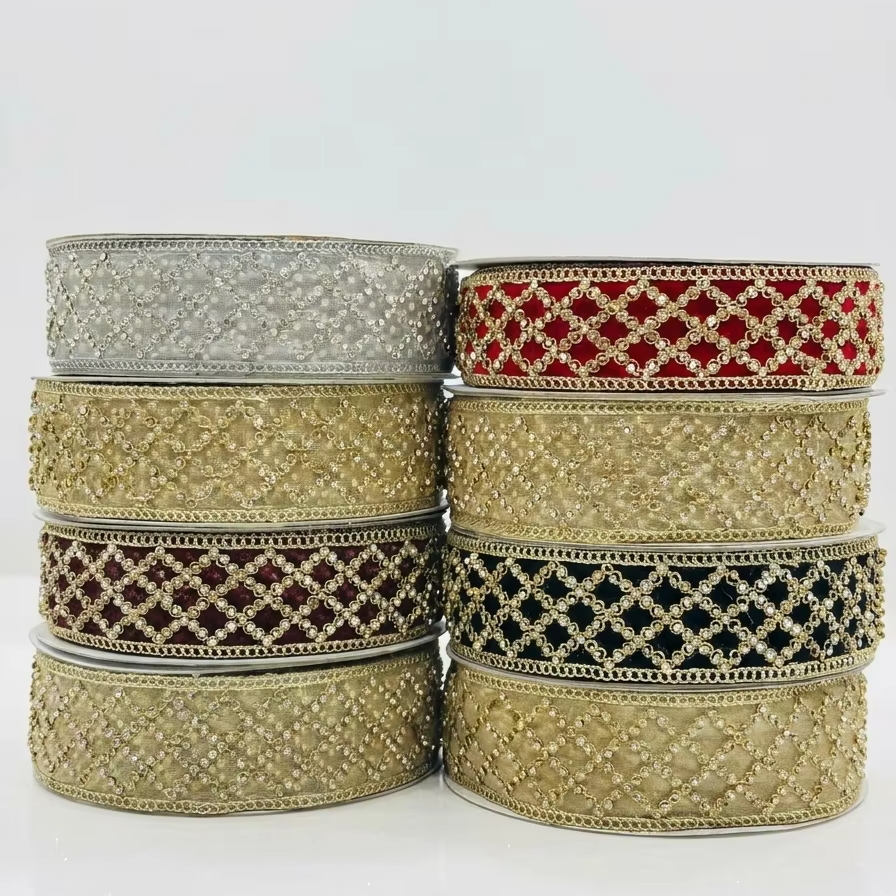 Ribete de encaje bordado de lujo con pedrería multicolor y bordes de cristal con trabajo manual pesado para vestido de novia y sari al por mayor