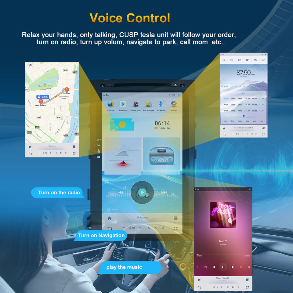 Estéreo, DSP, CarPlay, Enlace espejo, Android auto, Pantalla dividida, Administrador de archivos, Coche de Control de volante