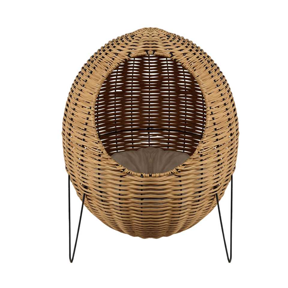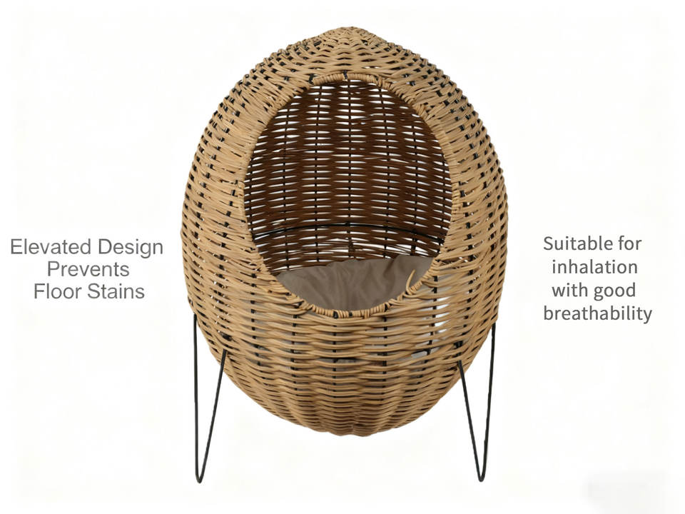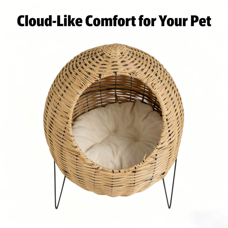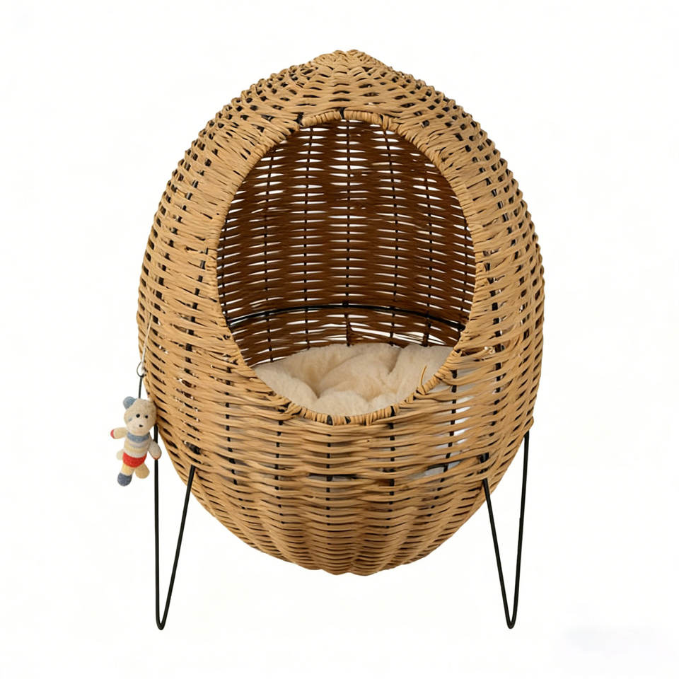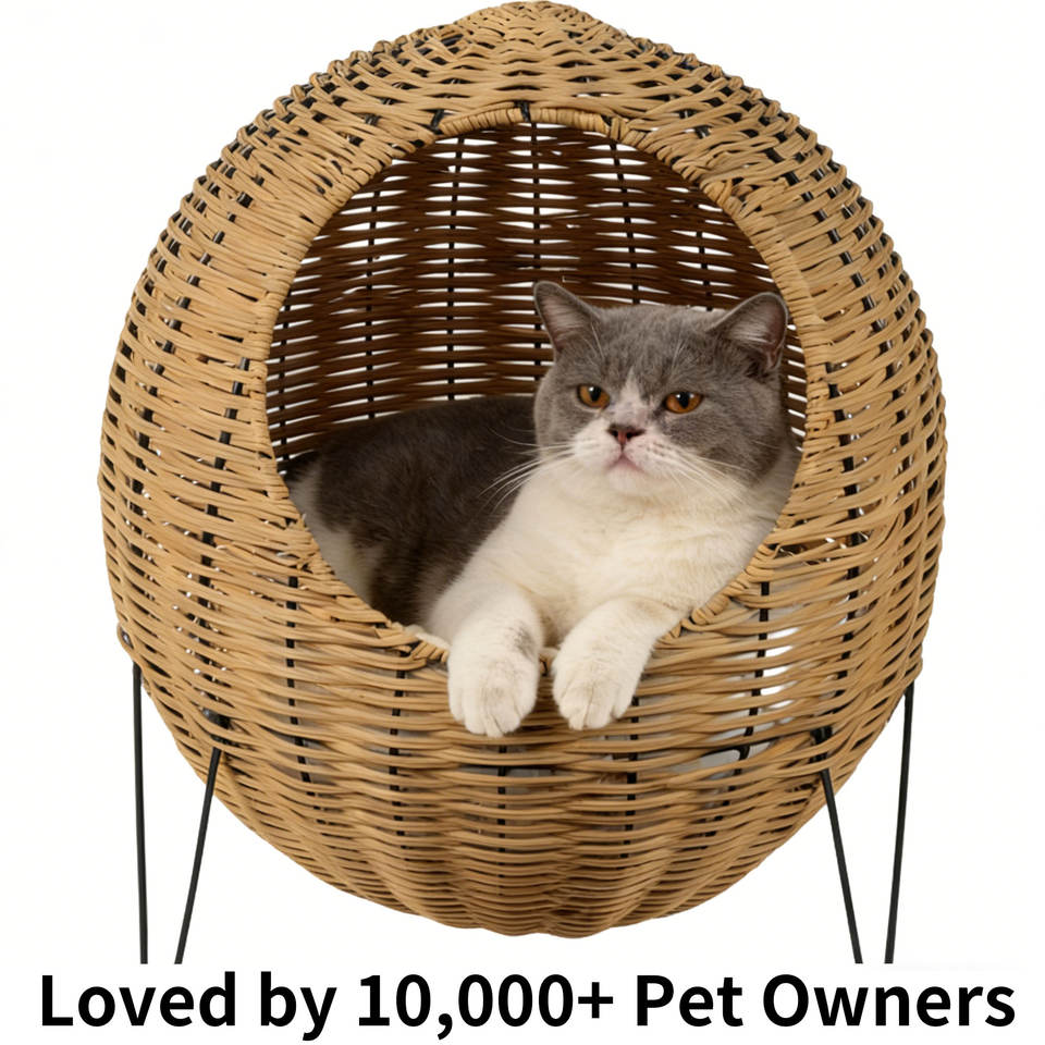 Cesta de Ratán Tejida a Mano de Estilo Natural de Lujo para Gatos, con Cama Elevada y Acogedora para Mascotas, Base de Patas de Metal Sólido