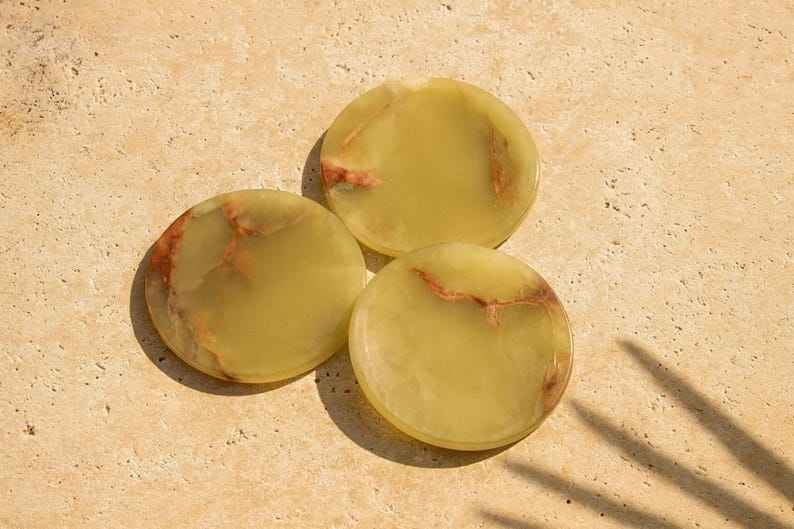 Juego de Seis Posavasos de Mármol Ónix de Lujo con Soporte, Elegantes Accesorios para Mesa de Centro