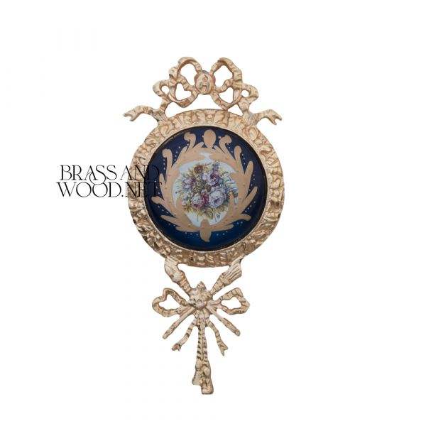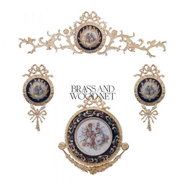 Juego de colgantes de pared de latón macizo adornado de lujo con platos de porcelana Floral