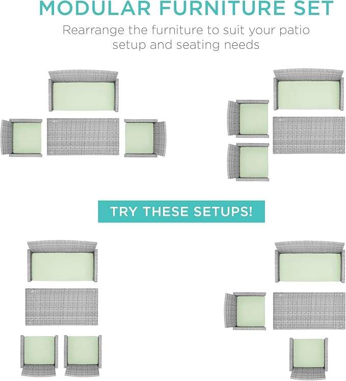 Juego de Muebles de Jardín de Lujo, Seccional, de Mimbre y Ratán, con Mesa, en Oferta