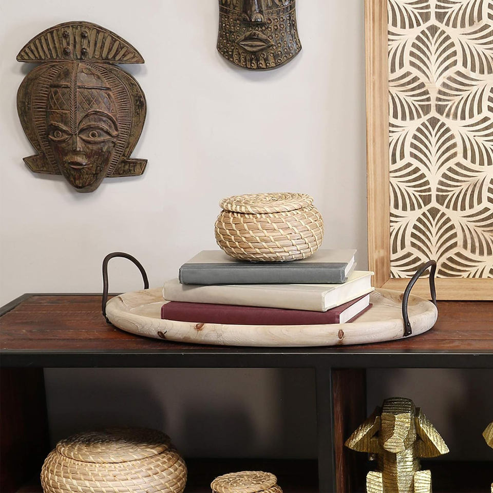 Product Name:Oval Shape Wooden Tray With Metal Handles