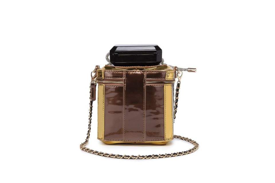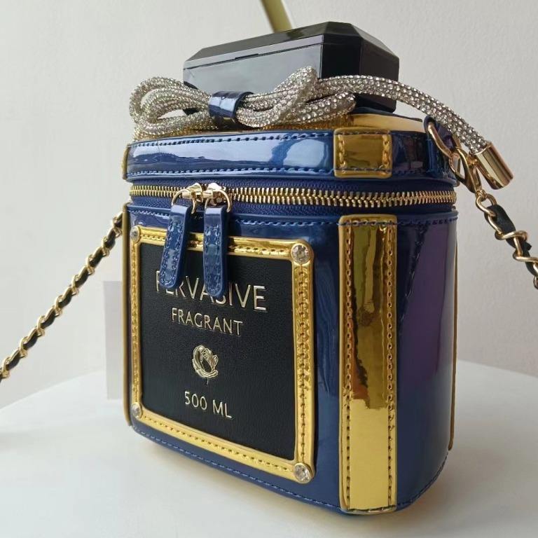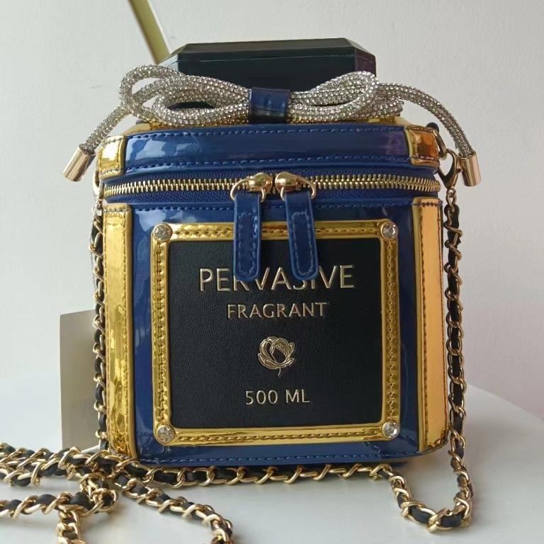 Bolso de Mano de Lujo en Forma de Botella de Perfume, Material PU, Diseño Clásico, Brillantes, Cadena, Cierre de Cremallera, 1-1.9L