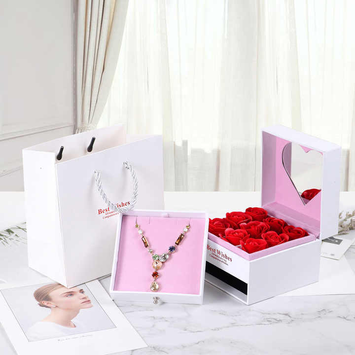 Caja de Embalaje Cuadrada de Papel de Lujo de Doble Capa, Caja de Regalo Personalizada con Espejo y Cajón para Joyería, Caja de Regalo para Boda, Embalaje para Joyería