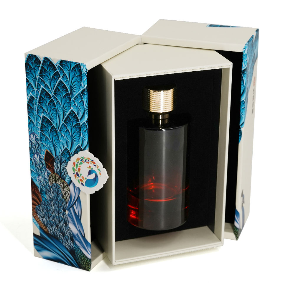 Caja de Regalo Rígida de Doble Apertura con Diseño de Pavo Real de Lujo para Empaque de Perfume con Inserto de Espuma Personalizado